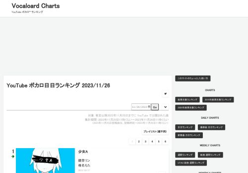 YouTube ボカロ日日ランキング
